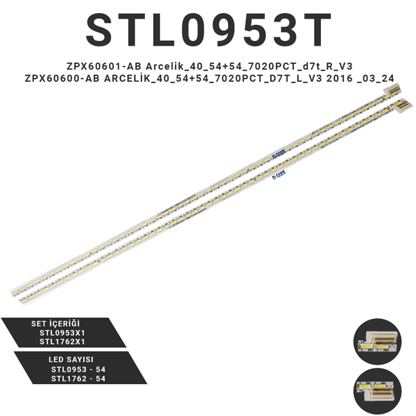 40" ZPX60601-AB, Arcelik_40_54+54_7020PCT_d7t_R_V3, ZPX60600-AB, ARCELİK_40_54+54_7020PCT_D7T_L_V3 2016 _03_24 Orjinal Tv ledi kodu ile arama yaptığınızda Arçelik,Beko Modelleri ile uyumlu olan STL0953T Tv Ledine SLine güvencesiyle sahip olabilirsiniz.