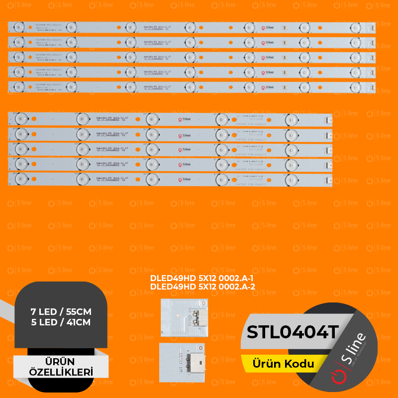 49" DLED49HD 5X12 0002.A-1, DLED49HD 5X12 0002.A-2 Orjinal Tv ledi kodu ile arama yaptığınızda SUNNY, AWOX, AXEN Modelleri ile uyumlu olan STL0404T Tv Ledine SLine güvencesiyle sahip olabilirsiniz.