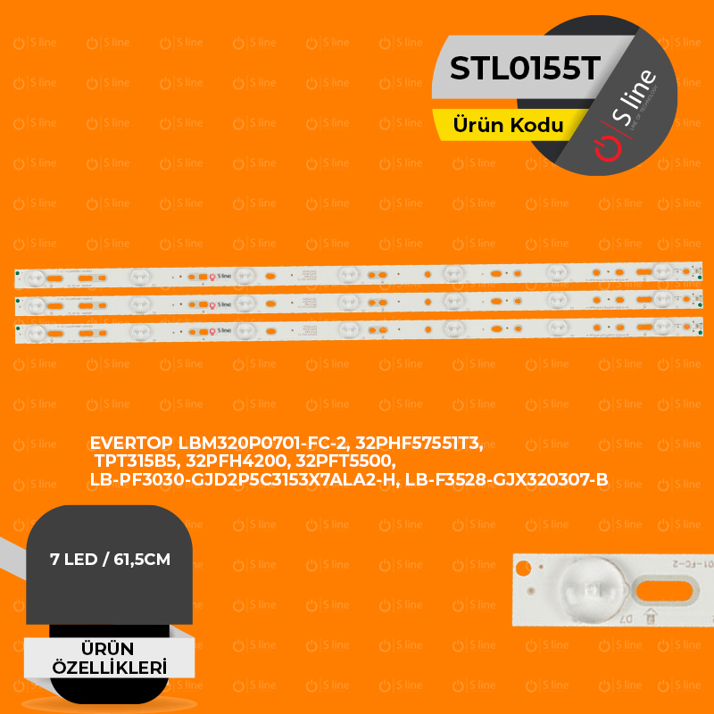 EVERTOP LBM320P0701-FC-2, 007-0340530, 135NBP40HAC9A Orjinal Tv ledi kodu ile arama yaptığınızda Philips, Sony Modelleri ile uyumlu olan STL0155T Tv Ledine SLine güvencesiyle sahip olabilirsiniz.